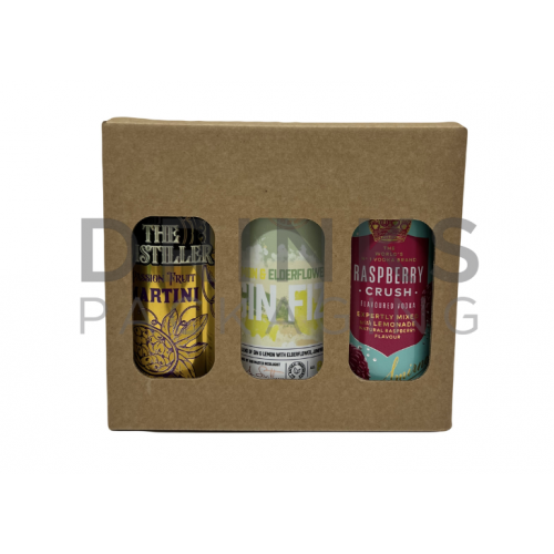 This Gift Box is suitable for 3 x 250ml slim cans (134mm height, 53.3mm diameter). |